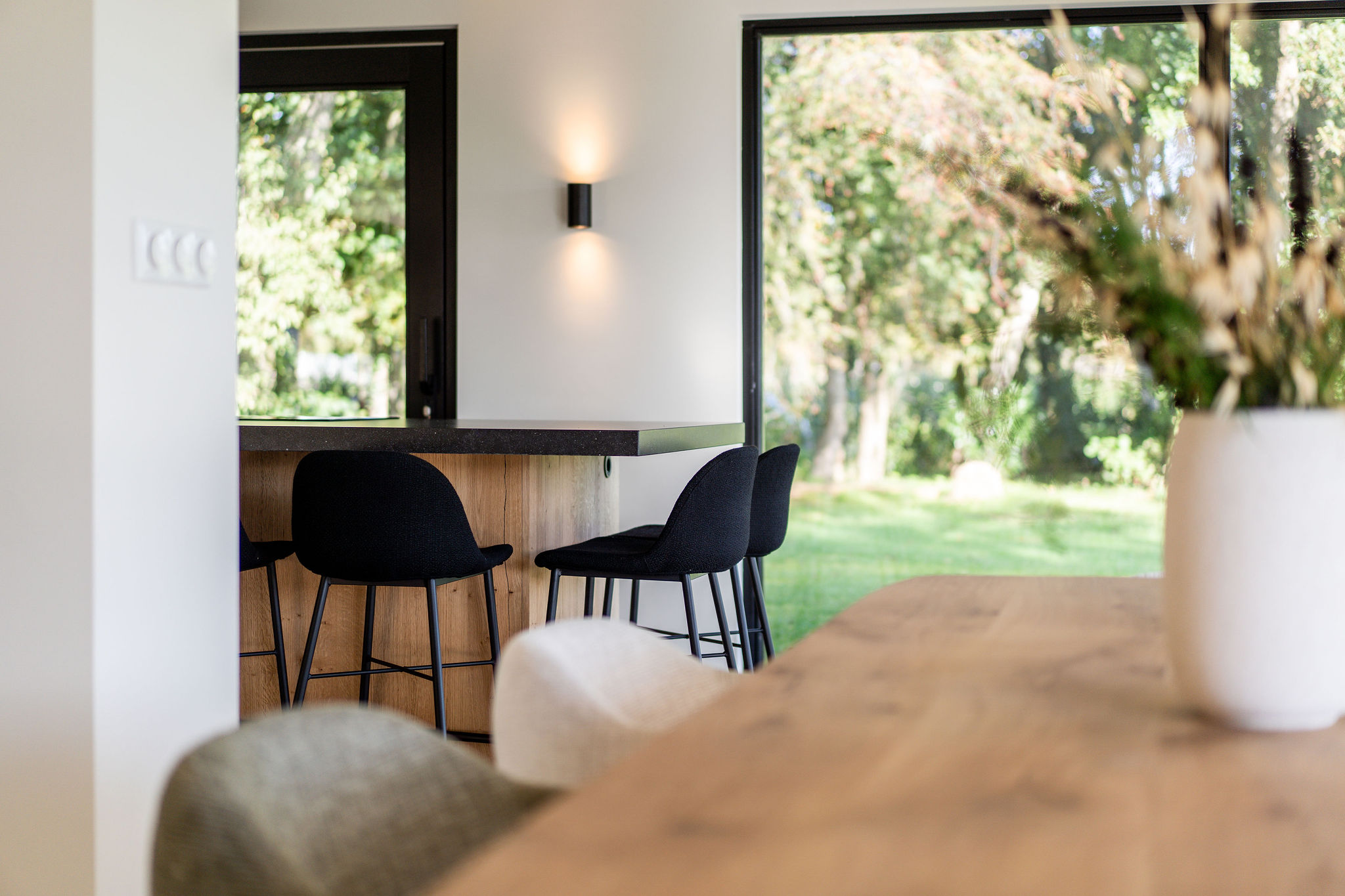Voor deze woning heeft Pronk Home de maatwerk keuken gerealiseerd. Door het kleurgebruik en de stijl worden buiten en binnen met elkaar verbonden.